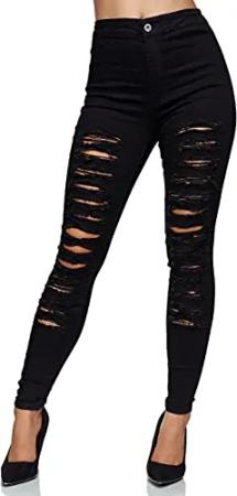 Damen Jeans High Waist Destroyed Chunkyrayan 547 Schwarz-44 (2XL)