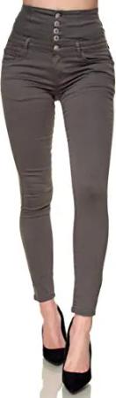 Damen High Waist Hose Skinny Jeans Chunkyrayan EL09D3 Grau-42 (XL)