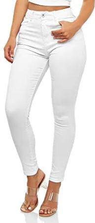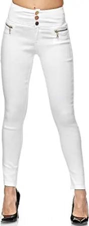 Damen Jeans High Waist Push Up Skinny Fit Chunkyrayan 1949-1 P White-40 (L)