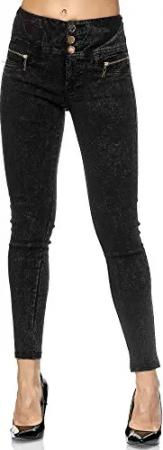 Damen Jeans Stretch Skinny High Waist Chunkyrayan EL60 Schwarz-42 (XL)