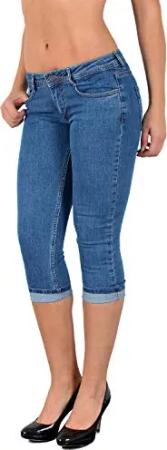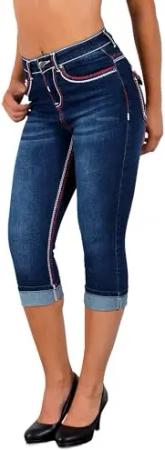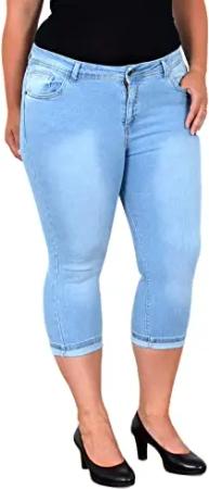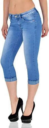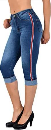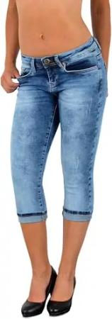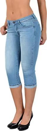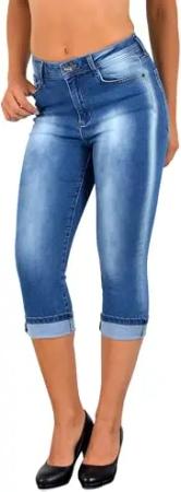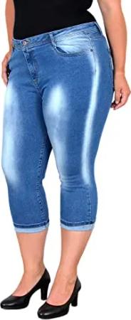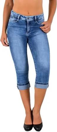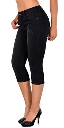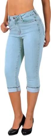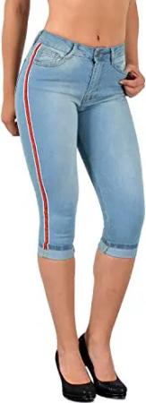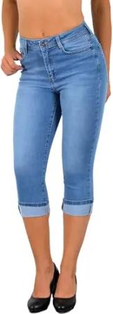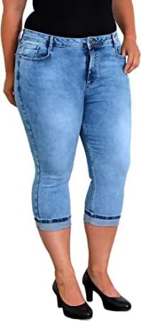 Damen Capri Jeans Hose Damen Caprihose 3/4 Jeans-Hose kurz bis Übergröße C15