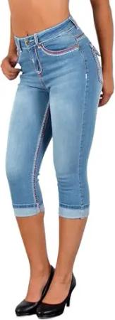 Damen Capri Hose Damen High Waist Caprihose Kurze Jeans Hose hoher Bund bis Übergröße C21