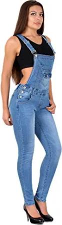 Damen Jeans Latzhose Skinny Latzjeans Overall Jeans-Latzhose mit Träger H340