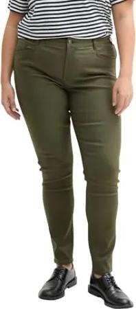 Damen Plussize Coated Skinny Jeans in Leder-Optik, 23802 - Urban Olive Green, 46