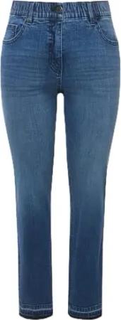 Damen große Größen Übergrößen Plus Size Jeans Sarah, Fransensaum, schmales Bein, Elastikbund Blue Denim 56 823810902-56