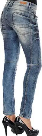 CIPO&BAXX Damen Jeans mit Frayed Legs und Zipper, Blau, 27W / 32L