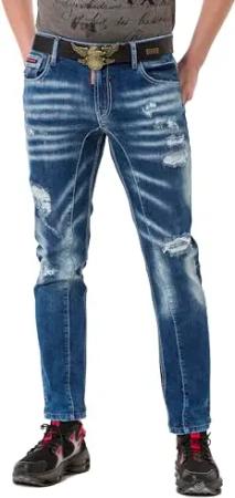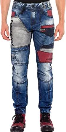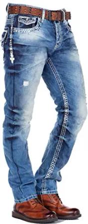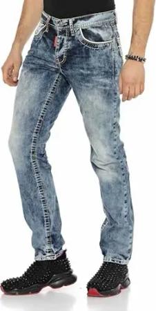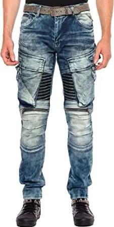 Herren CD529 Jeans Hose Straight Fit Waschung CD529 Blau Ziernähte Biker Hose Denim Design Blau