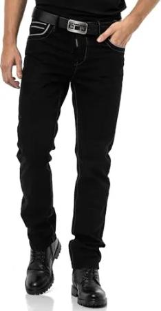 Herren Jeans CD148 – Regular Fit Straight Jeans Hose, Modern Denim Schwarz mit Kontrastnähten, Bequeme Herren Freizeithose im trendigen Design - CD148-BK-W29-L32