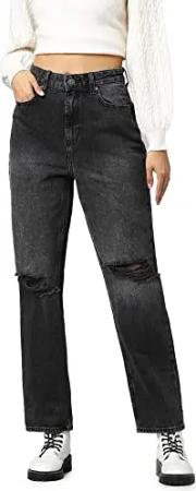 Damen Onlemily Life Hw STR ANK DNM Nas997 Noos Jeans, Black Denim, 30W / 30L EU