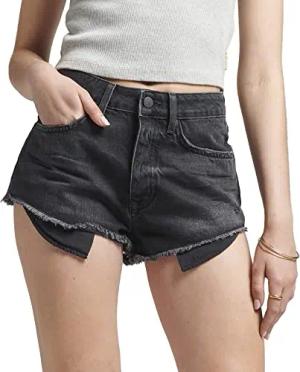 Damen Abgeschnittene Vintage Shorts mit hohem Bund Wolcott Schwarz Steingrau 40
