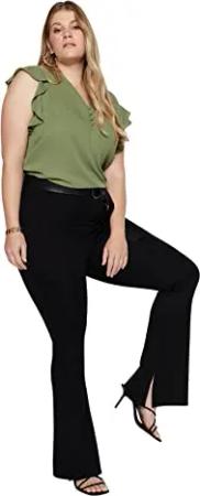 Curve Plus Size Spanish Leg Flare Slit Knitted Trousers - Tbbaw23Ar00002