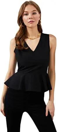 Damen Black V-Neck Floune gewebte Bluse Twoss19XB0065, Black 36