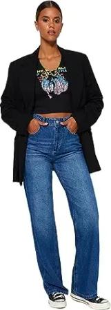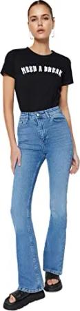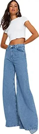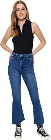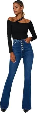 Damen Trendyol Herren Hoher Bund Bootcut & Flared Jeans, Blau, 34 EU