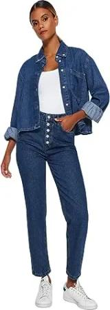 Damen Trendyol Double Button High Waist Mother Jeans, Blau, 36 EU