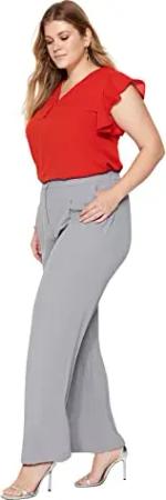 Damen Gerade Weites Bein Hohe Taille Hosen in Plus Size