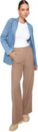 Damen Trendyol Men's High Waisted Slim Fit Trousers Pants, Greige, 38 EU