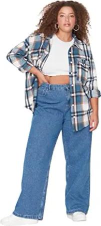 Damen Trendyol Herren Hoher Bund Weites Bein der 90er Jeans, Blau, 42 EU