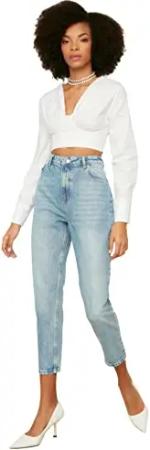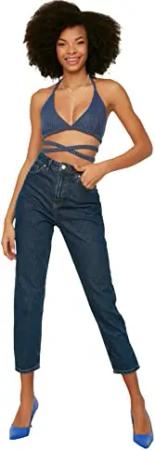 Damen Trendyol High Waist Mom Jeans, Marineblau, 38 EU