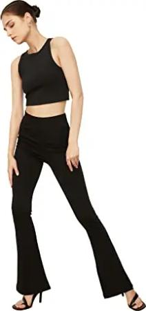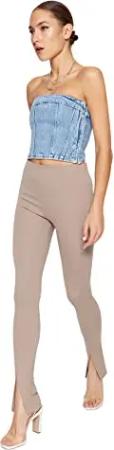 Damen Trendyol Hacivert Flaschung Gestrickte N Pants Palazzo, Nerz, S