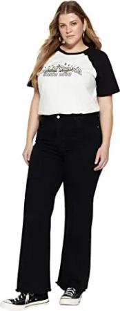 Damen Women Plus Size High Waist Flare Leg Plus Size Jeans Hose, Black,