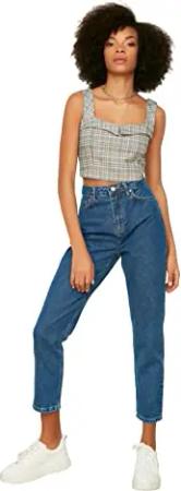 Damen Trendyol High Waist Mom Jeans, Indigoblau, 34 EU