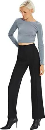 Damen High Waist Wide Leg Pants, Schwarz, 38 EU
