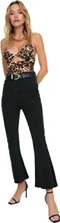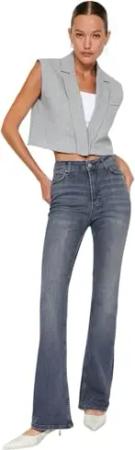 Damen Trendyol Torfonned mit Hoher Taille Hoher Taille-kropf-flare-jeans Jeans, Anthracite, 36 EU