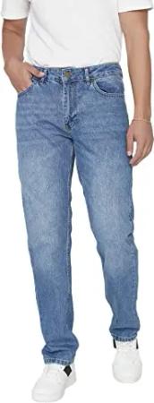 Herren Trendyol Herren Mittlerer Bund Straight Jeans, Blau, 32 EU