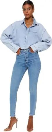 Light Blue Shaping Effect High Waist Skinny Jeans TWOAW24JE00070, Light Blue, 42