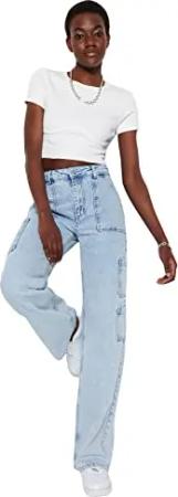 Women's Light Blue High Waist Wide Leg with Cargo Pocket TWOSS23JE00055 Jeans, 30
