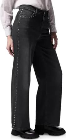 Damen Jeans Hose Rinse 70'S Wide Leg High Waist, Schwarz (Rinse), 28W/27L