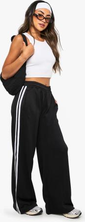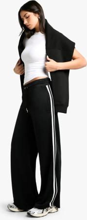 Womens Tricot Side Stripe Tape Straight Leg Jogger - Black - L, Black