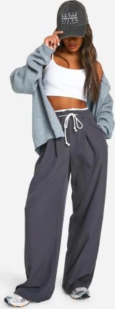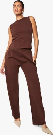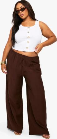 Womens Plus Woven Drawstring Wide Leg Trouser - Chocolate - 42, Chocolate