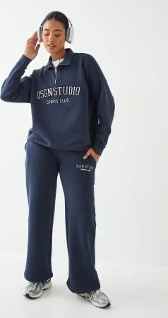 Jogginghose Mit Geradem Bein Und Dsgn Studio Kontrast-Schriftzug - Blue - L, Blue