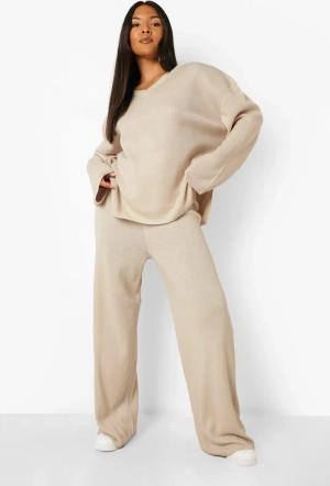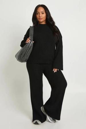 Plus Weicher Gerippter Oversize Rundhals-Pullover & Hose - Black - 44, Black