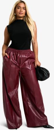 Plus Pu-Jogginghose Mit Weitem Bein Und Elastischem Bund - Berry - 44, Berry