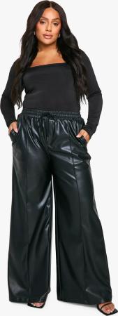 Plus Pu-Jogginghose Mit Weitem Bein Und Elastischem Bund - Black - 48, Black