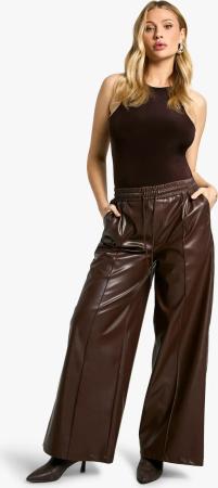 Umstandsmode Pu-Jogginghose Mit Weitem Bein Und Elastischem Bund - Chocolate - 40, Chocolate