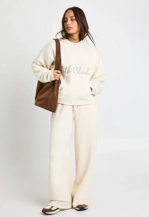 Womens Ath Club Embroidered Deep Waistband Straight Leg Jogger - Cream - L, Cream