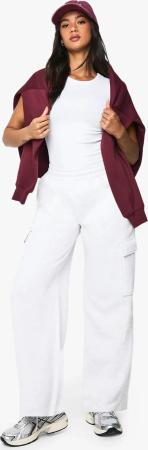 Womens Wide Leg Cargo Jogger - Ash Grey - S, Ash Grey