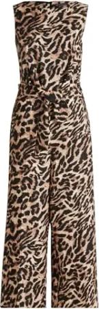 Malito - Damen Jumpsuit - langer Einteiler - Overall Carmen Ausschnitt - Hosenanzug Uni - Romper Leo-Print 4538 - (Schwarz)