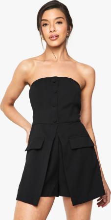 Malito - Damen Jumpsuit - Einteiler mit Gürtel & Taschen - Bandeau Sommer Overall - kurzer trägerloser Playsuit - unifarbener Romper 8964 (Schwarz)