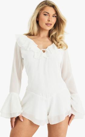 Chiffon-Playsuit Mit Rüschen - Ecru - 40, Ecru