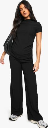 Umstandsmode T-Shirt Mit Seitlicher Raffung Und Hose Mit Weitem Bein - Black - 36, Black