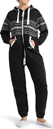 25G3 Azteken FG117 Damen Jumpsuit Overall Jogging Schwarz M