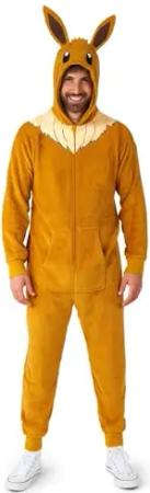 Erwachsene Unisex Eevee Onesie - Pokémon einteiliger Schlafanzug - Loose Fit - Inklusive Taschen - Braun