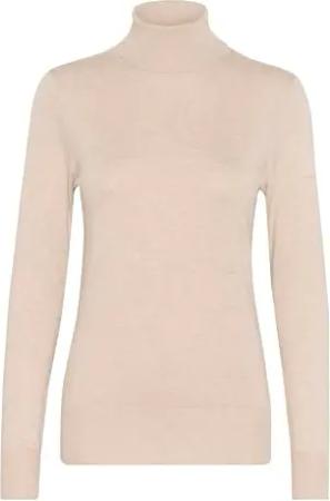 Damen Women's Rollneck T-Shirt Long Sleeves Slim Fit Hip Length Rib Edges Pullover, Feather Gray Melange, Large