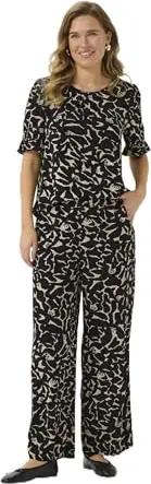 KAsigna Cropped Pants Damen Hose High Waist Loose Fit Gerade Dehnbar Cropped Lounge Freizeit Hose Black Oyster 42