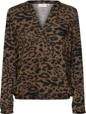 Langarm-Bluse KAditte Bluse Damen Langarm V Ausschnitt Damen Oberteil Print 38, Major Brown/Black Leopard