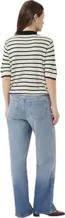 Damen Women's Casual Pants Elastic Waist Wide Legs Full-Length Pockets Hose, Chalk/Black Stripe,